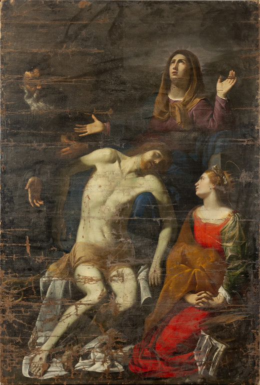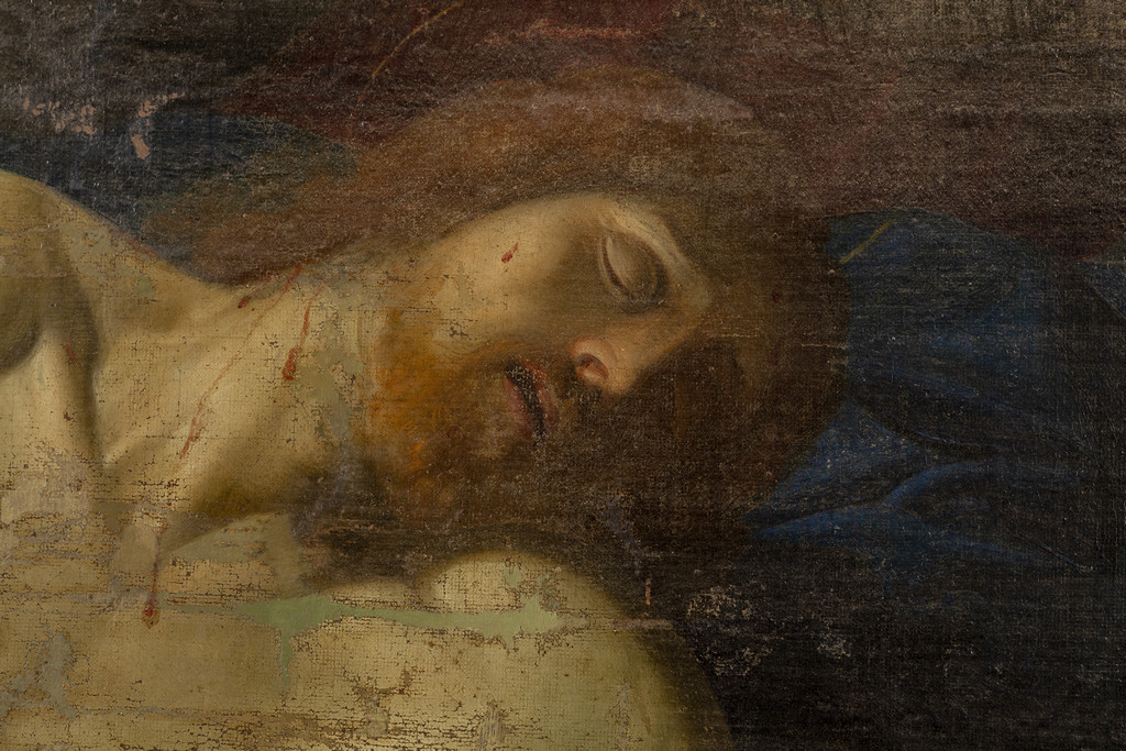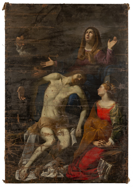 Scuola romana sec.XVII 'Compianto sul Cristo morto' olio