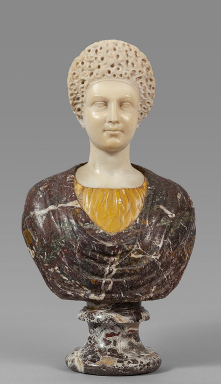 Busto di giovane donna in breccia testa in marmo statuario sec.XIX