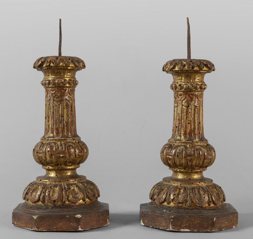 Coppia di candelieri in legno finemente intagliato e dorato Firenze inizi sec.XVII