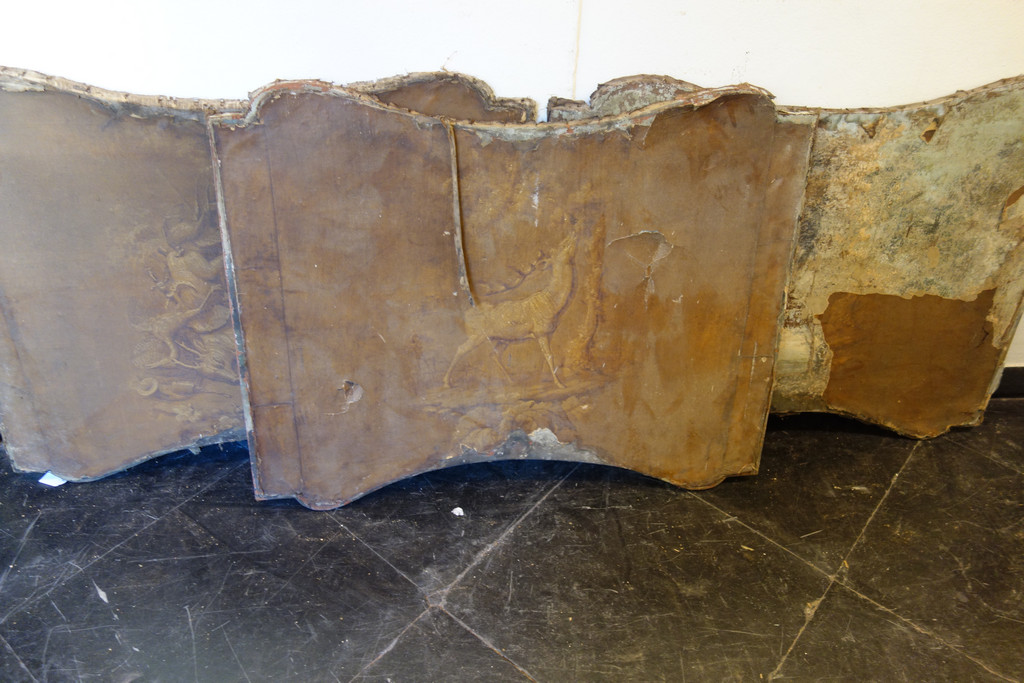 Trofei di caccia tre sovraporta olii su carta applicati su tela