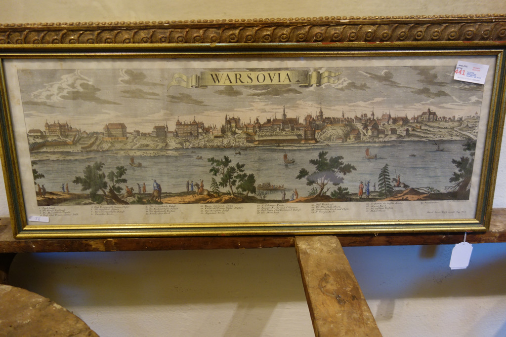 Incisione acquarellata raffigurante Varsavia sec.XVIII