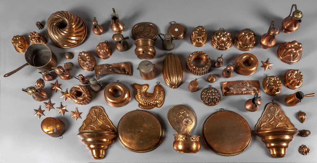 Centosettanta oggetti da cucina in rame di varie epoche forme e misure