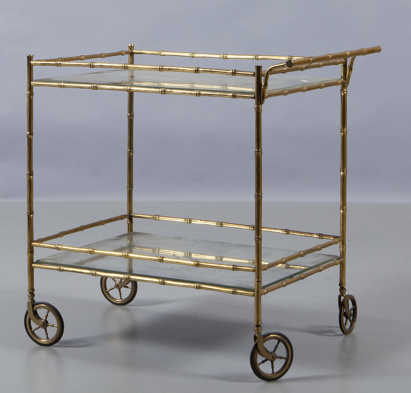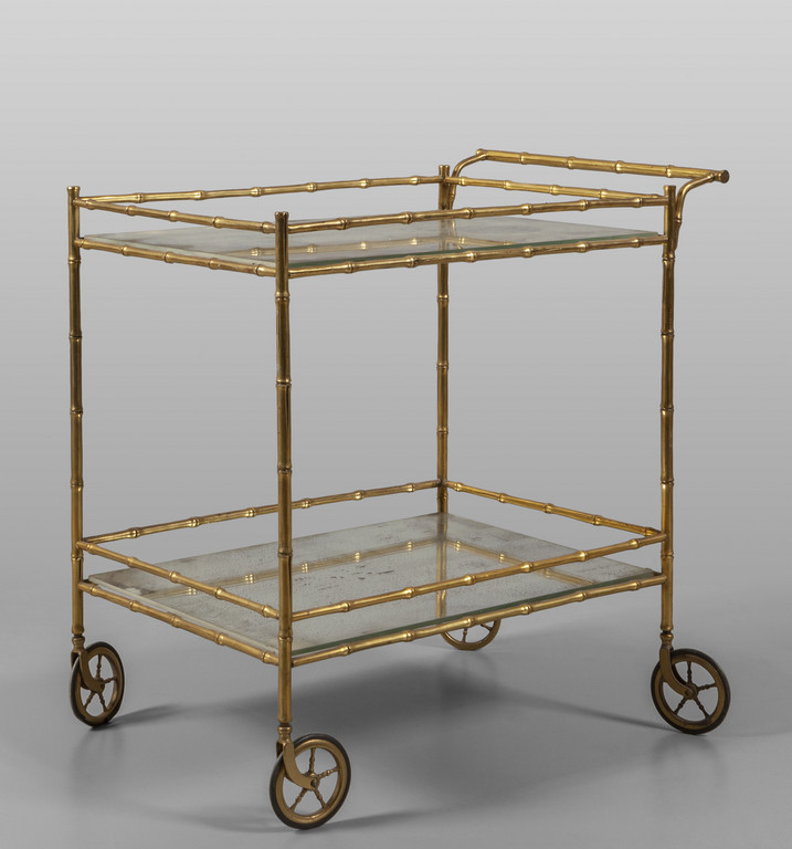 Carrello portavivande in bronzo con pianetti in specchio sec.XX