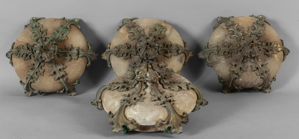 Quattro elementi di lampade da sospensione in bronzo ed alabastro sec.XIX