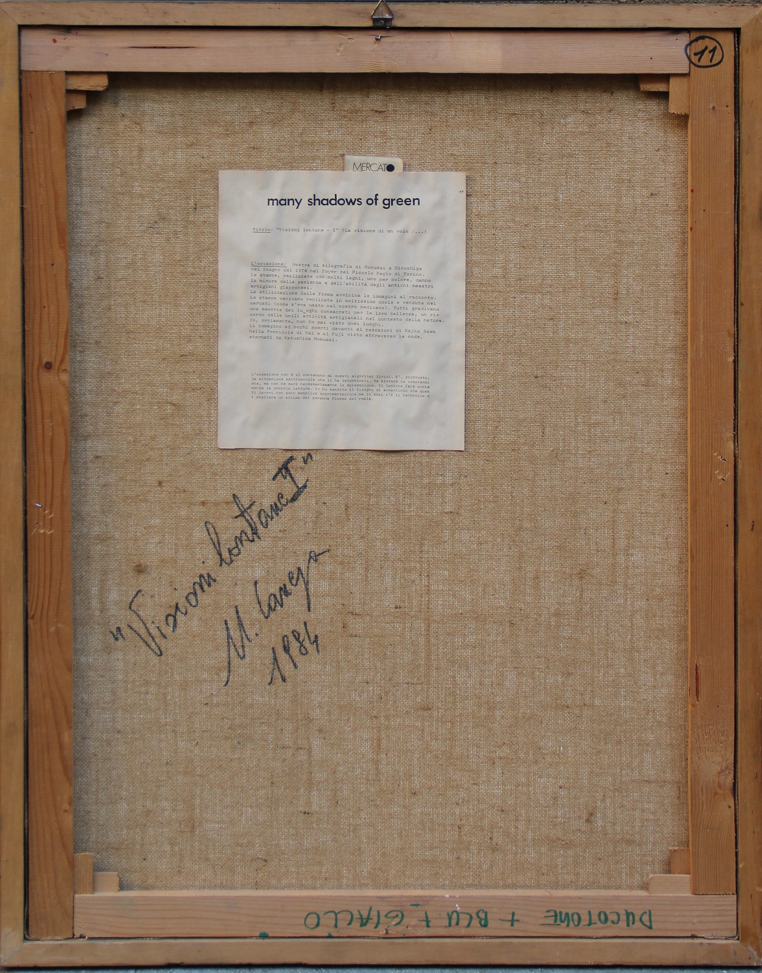 Titolo, firma, data "Visione lontane I, U. Carrega, 1984";