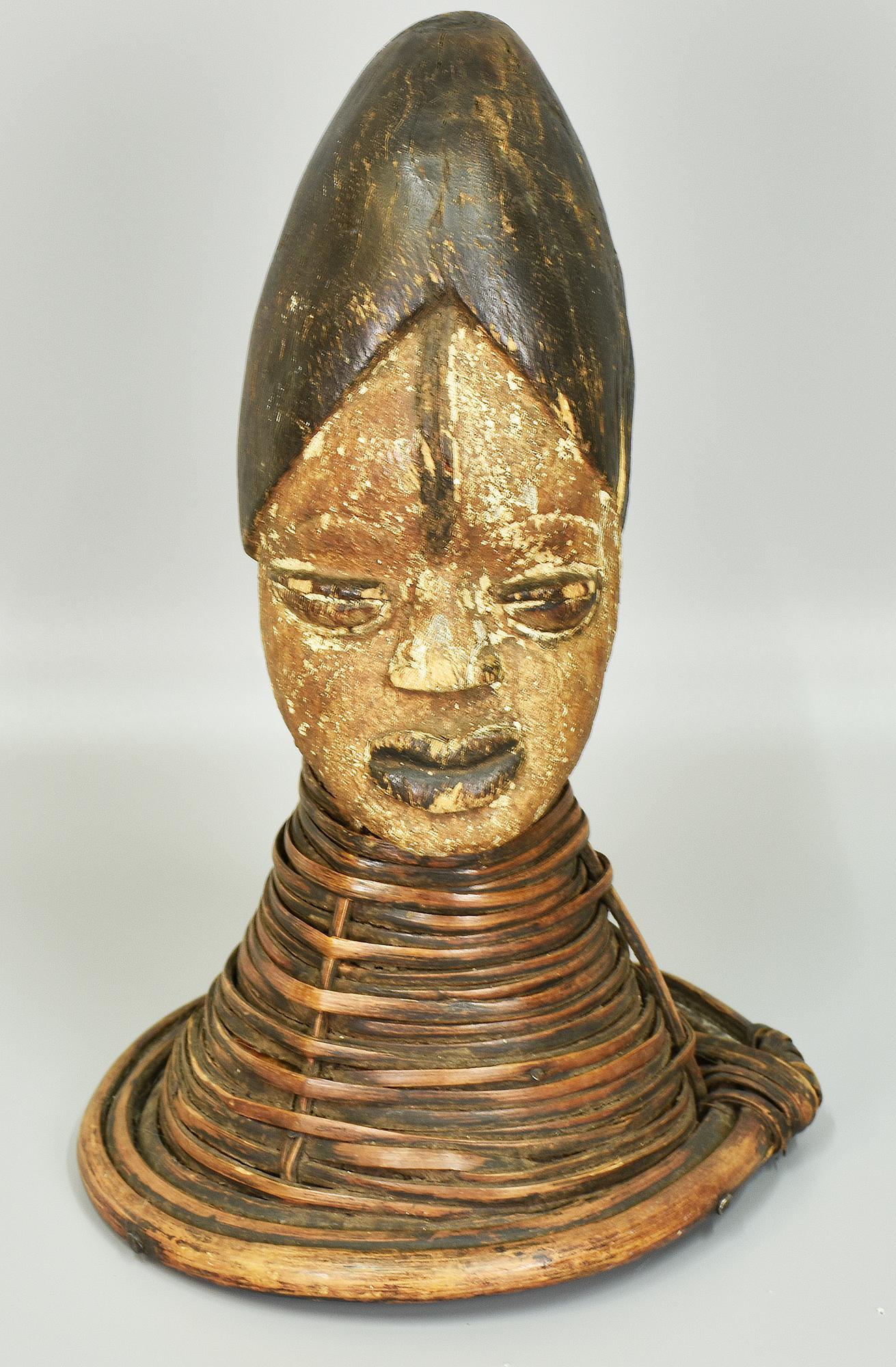 Testa Ekoi - NIGERIA testa in legno intagliato 36x23x19 cm XX secolo lievi...