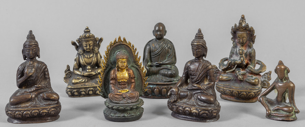 Sette figure orientali in bronzo di varie epoche e misure Tibet dal sec.XVIII al sec.XX