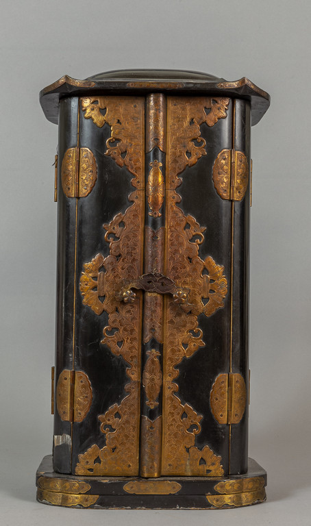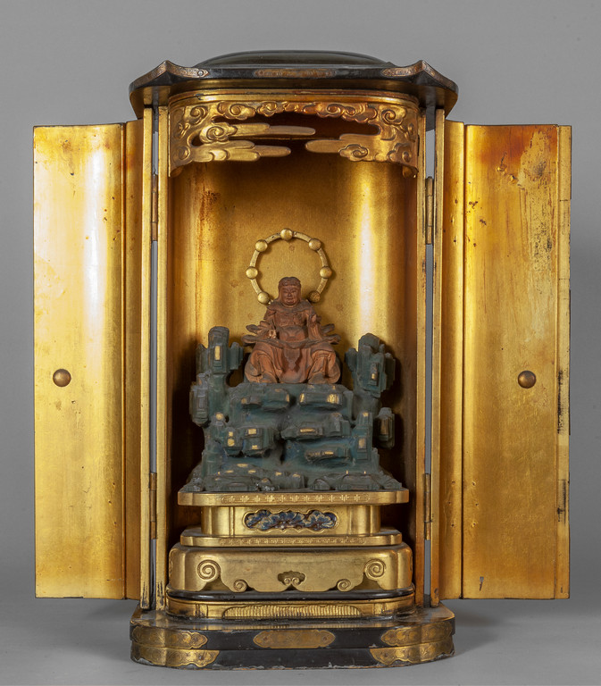 Tempietto con figura di saggio in legno laccato