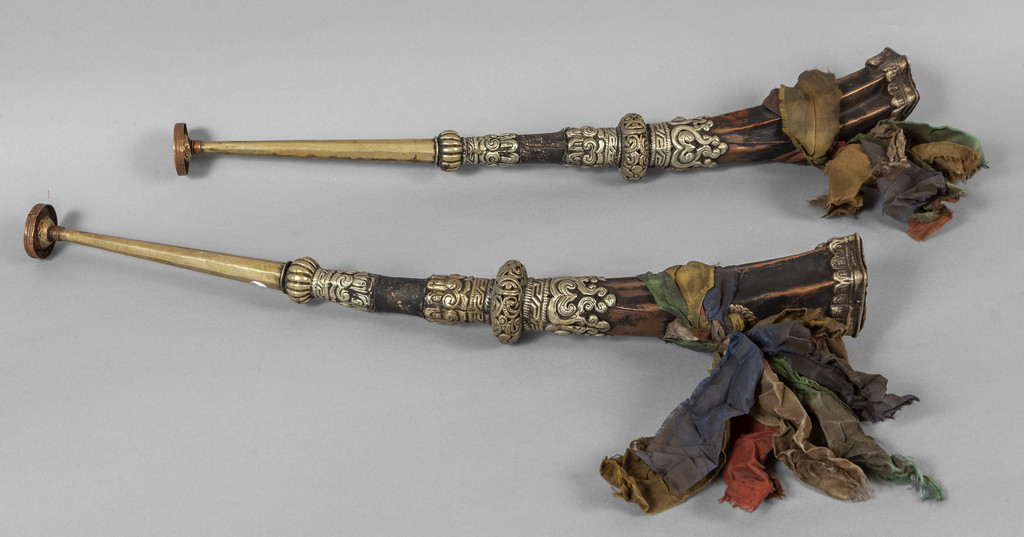 Previous Lot 0575 Next Aste Boetto - Via Mura dello Zerbino 10R, 16122 Genova ASTA DI ANTIQUARIATO E ARTE ORIENTALE ASTA DI ANTIQUARIATO E ARTE ORIENTALE Thursday 3 March 2022 hours 10:30 (UTC +01:00) OGGETTISTICA Coppia di trombe in rame sbalzato Tibet sec.XIXl.cm.56