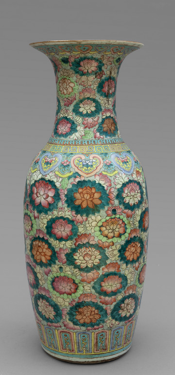 Vaso in porcellana collo a tromba decorato a fondo azzurro con fiori di loto Cina fine sec.XIX