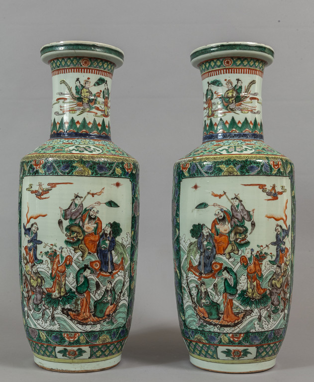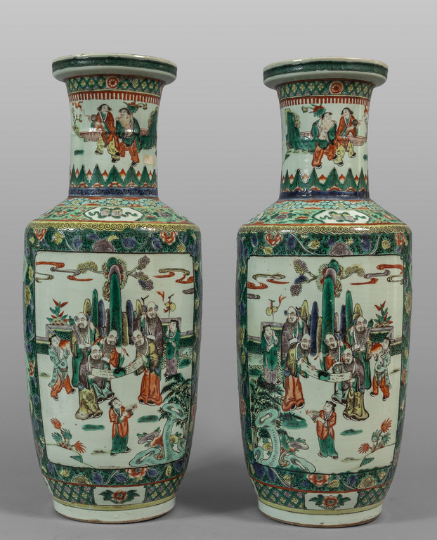 Coppia di grandi vasi in porcellana famiglia Verde decorati con figure sec.XIX
