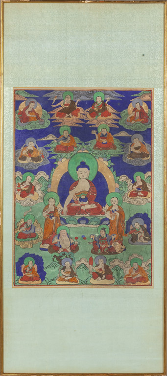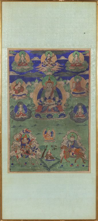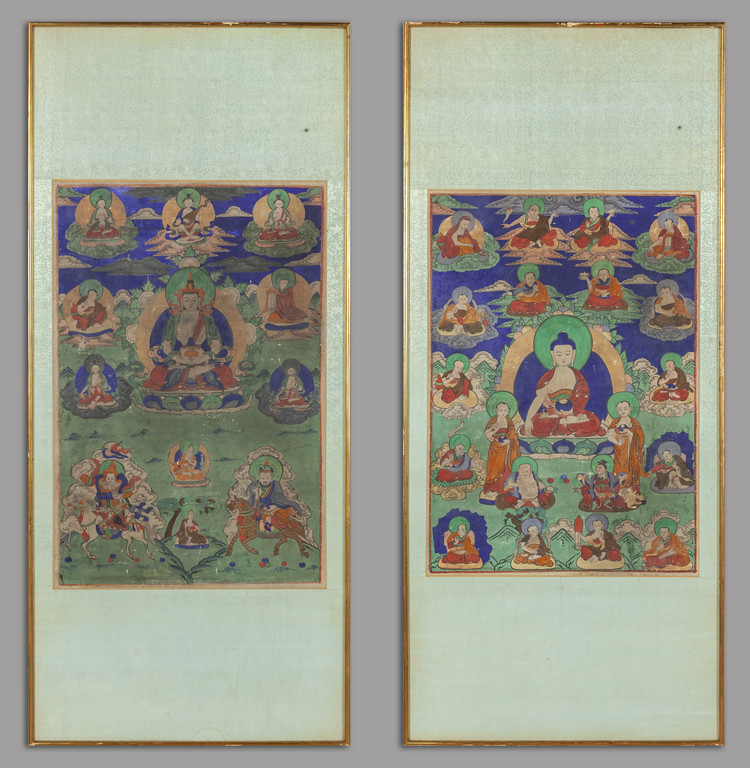 Coppia di tanka raffiguranti divinità orientali montati su pannelli Tibet sec.XIX