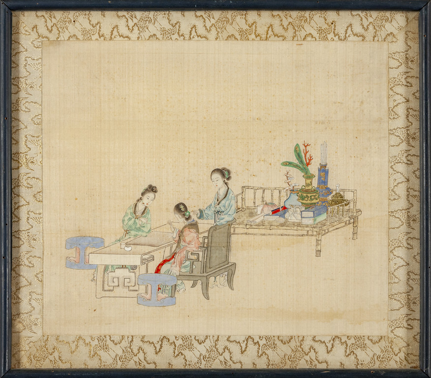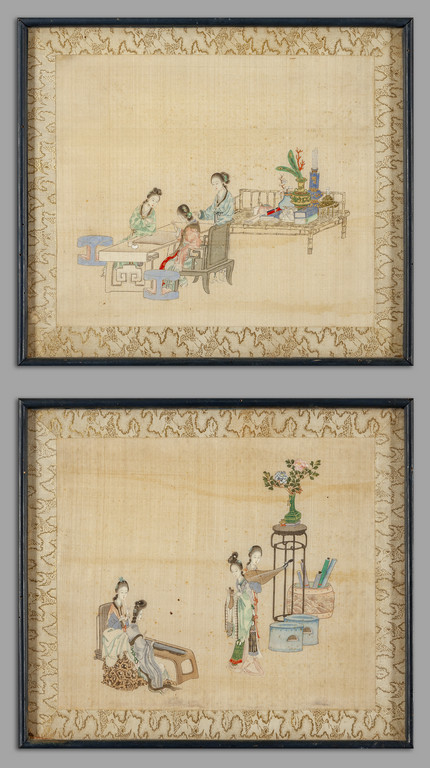'Fanciulle' coppia di disegni su seta Cina sec.XIX
