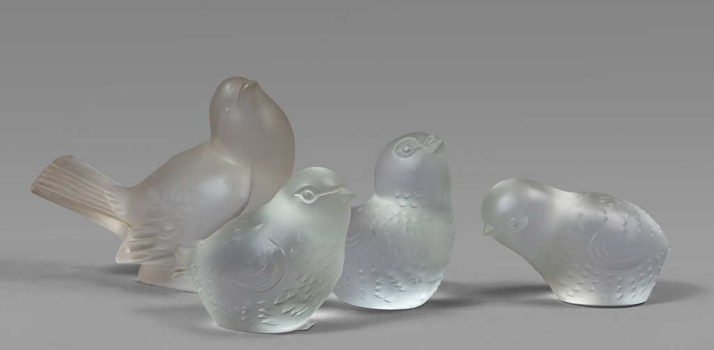 Tre oggetti in cristallo di Baccarat e scultura raffigurante uccellini f.ta Lalique (h.cm.9)