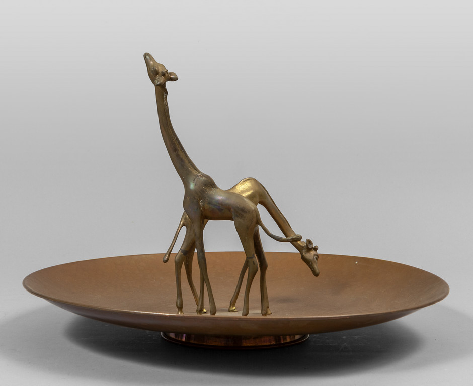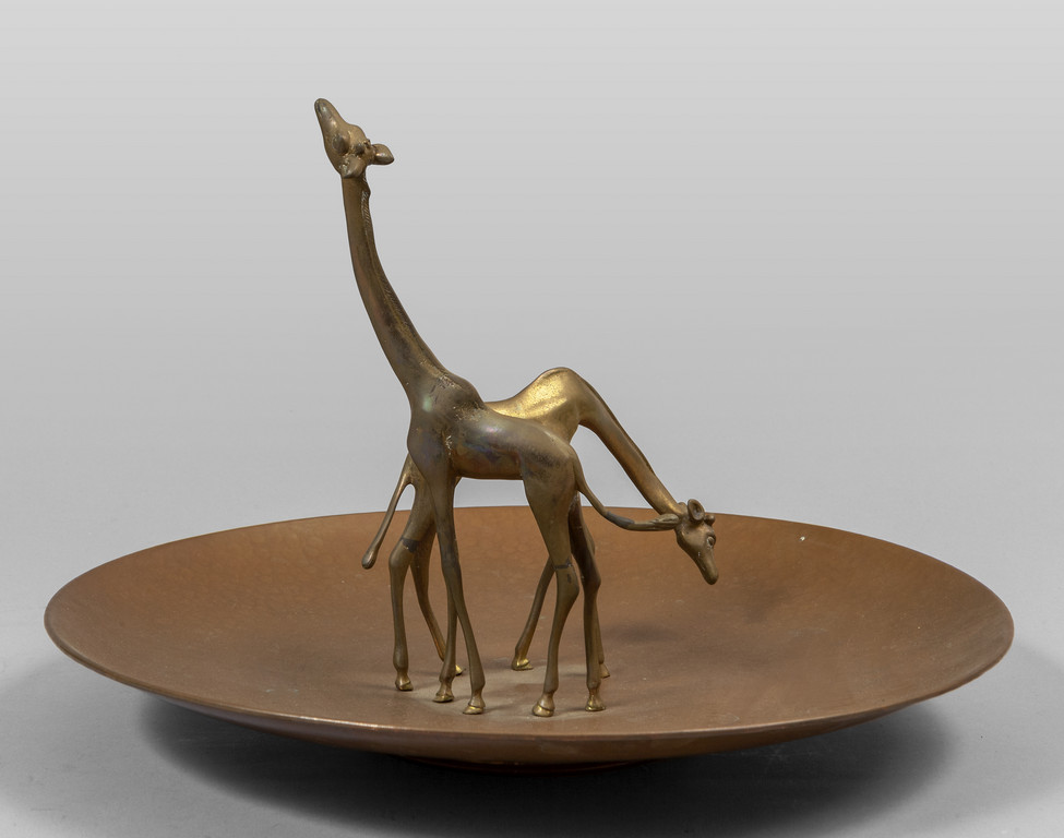 Centrotavola in rame sbalzato con due giraffe sec.XX