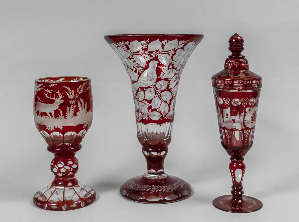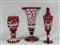 Vaso bicchiere e calice con coperchio in vetro lavorato Boemia