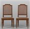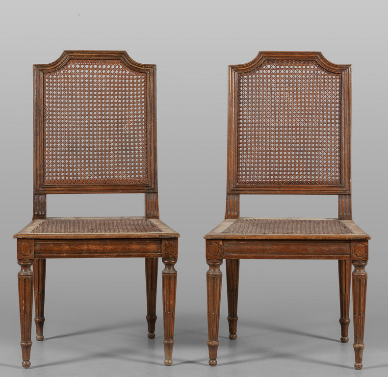 Sette sedie in stile Luigi XVI con schienale a scudo gambe scanalate e controscanalate