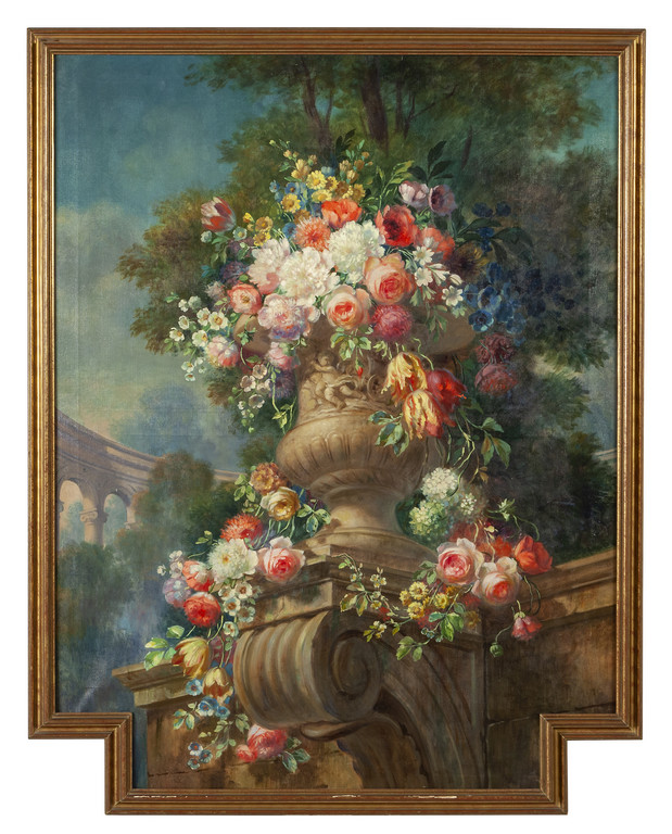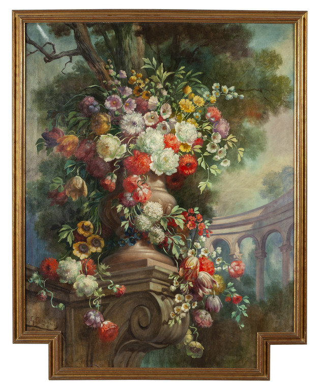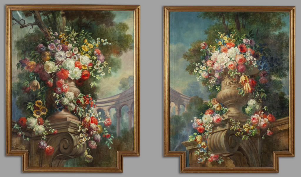 Vasi di fiori con sullo sfondo colonnati