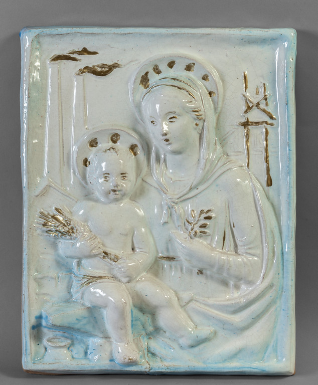 Madonna protettrice placca in maiolica policroma Sesto Fiorentino sec.XX
