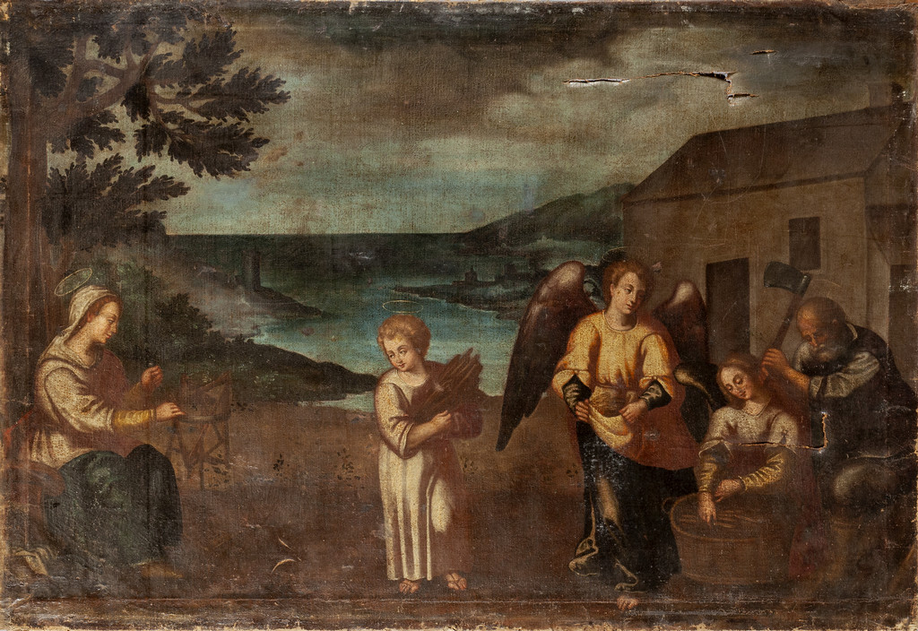 'Sacra Famiglia con sullo sfondo paesaggio marino' olio sec.XVII