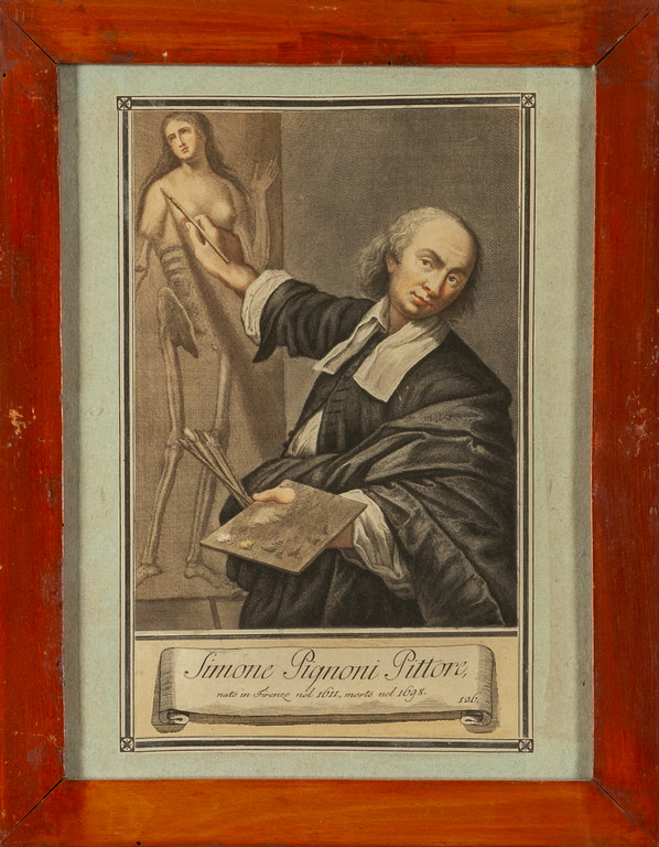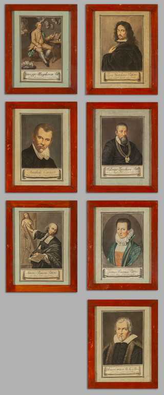 'Pittori famosi' sette stampe acquarellate sec.XVIII