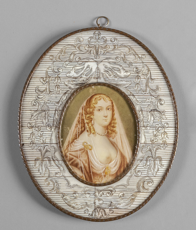 'Ragazza con velo' miniatura ovale cornice in osso sec.XIX