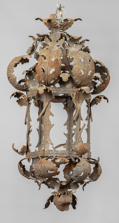 Lampione da ingresso in ferro battuto di forma esagonale sec.XIX