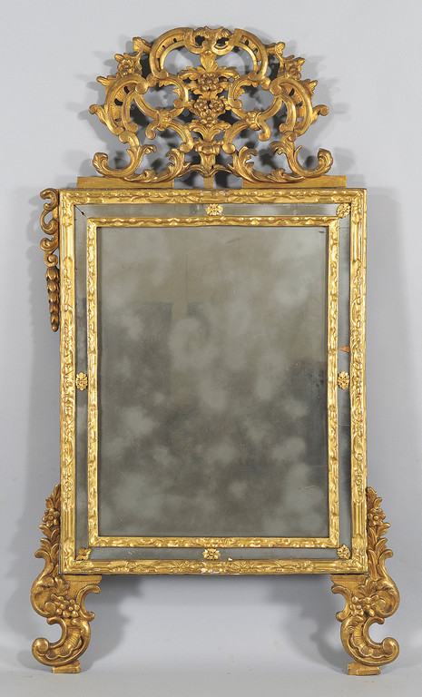 Specchiera in legno intagliato e dorato Piemonte sec.XVIII (piedi e cimasa rifatti)