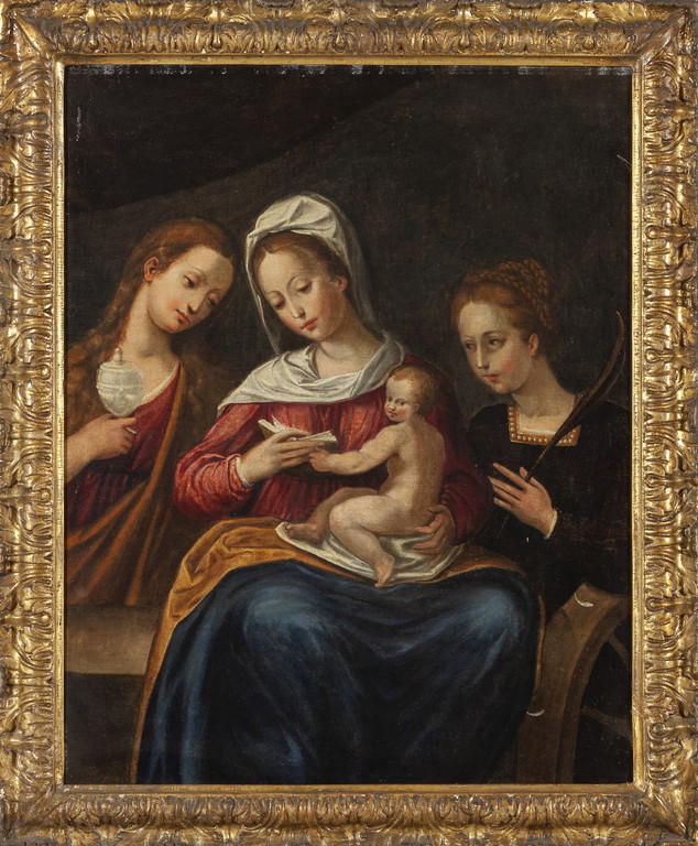 'Madonna con Bambino la Maddalena e Santa Caterina' olio sec. XVII