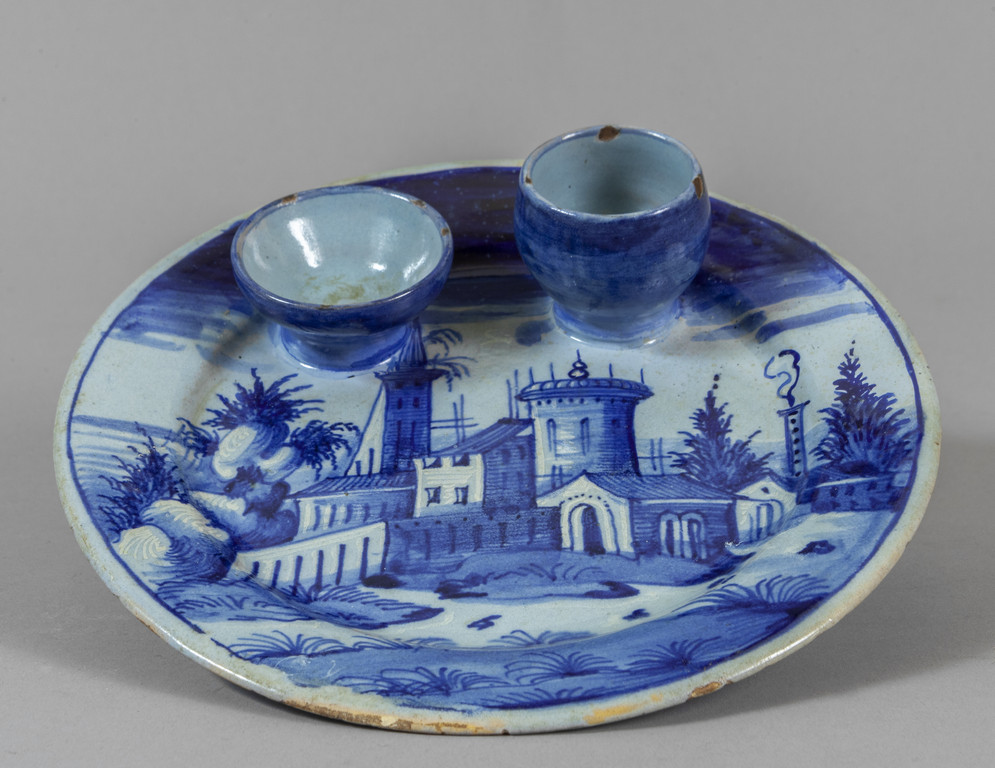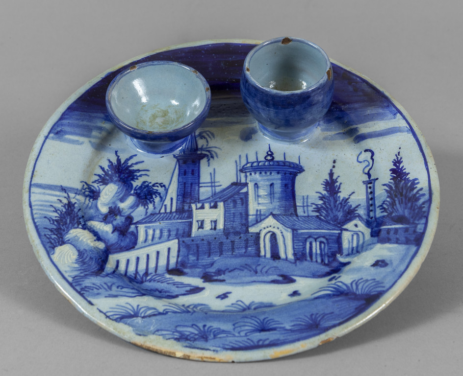 Portauovo in maiolica a decoro di paesaggi Venezia metà sec.XVI