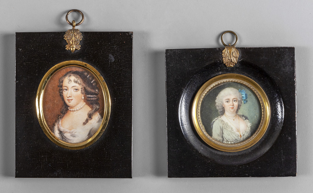 'Giovani ragazze' due miniature cornici in legno ebanizzato sec.XIX