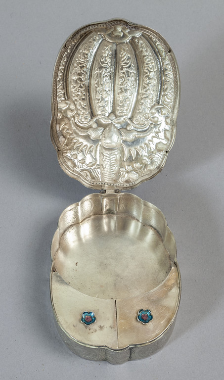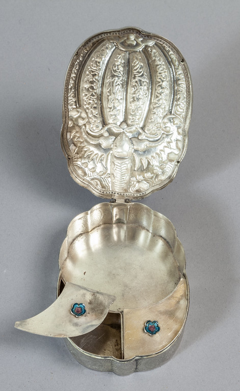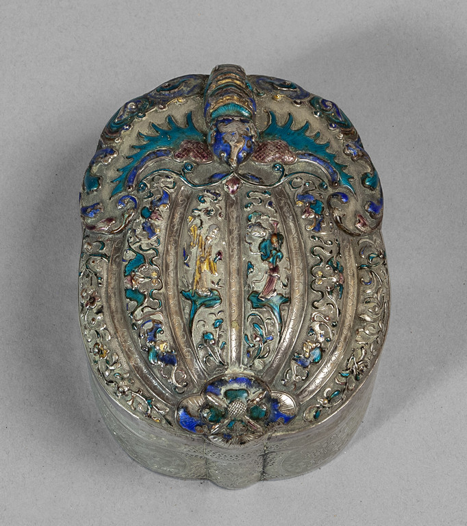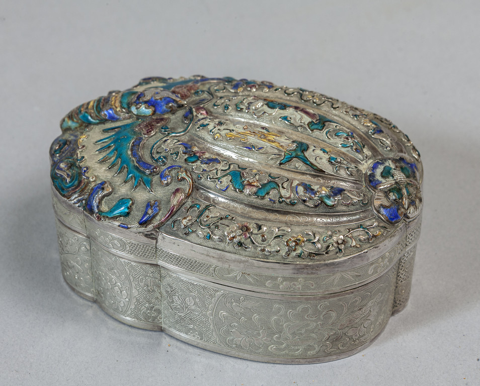 Scatola in argento sbalzato e smaltato Cina sec.XIX