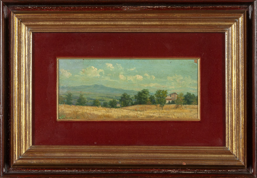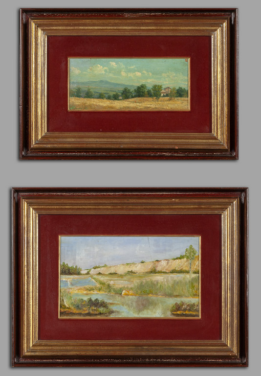 Scuola toscana inizi sec.XX 'Paesaggi' due olii uno su tavoletta e uno su tela
