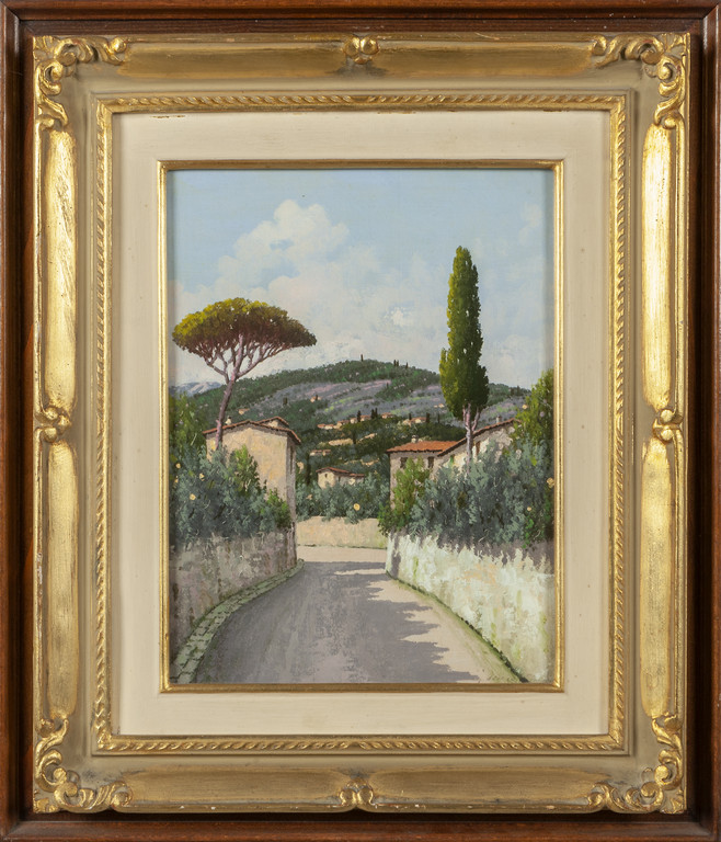 Scuola toscana sec.XIX 'Strada di campagna' olio su tavoletta f.to in b. a ds.