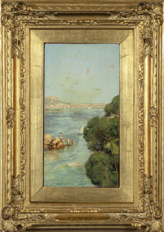 'Pescatore sullo scoglio' olio su tavoletta f.to in b. a s. Pratella