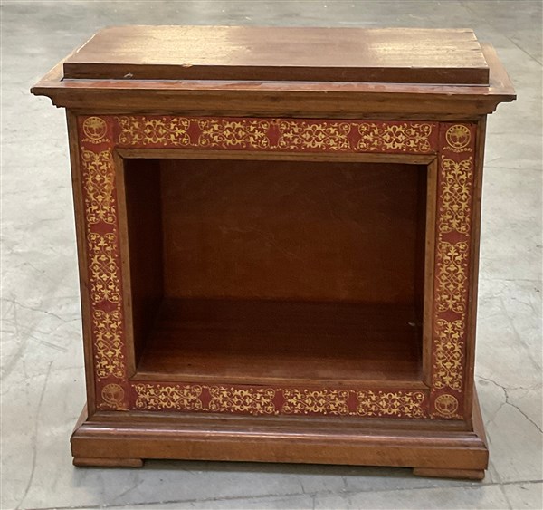 Lot 5 | Mobiletto portalibri in legno con vano a giorno, cornice in pelle impressa in o