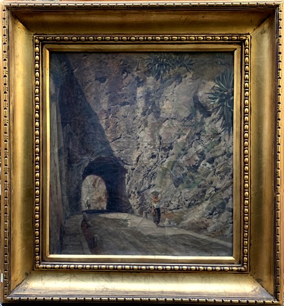"La strada" olio su tela (cm 60x50) Firmato in basso a destra. In cornice (difetti)