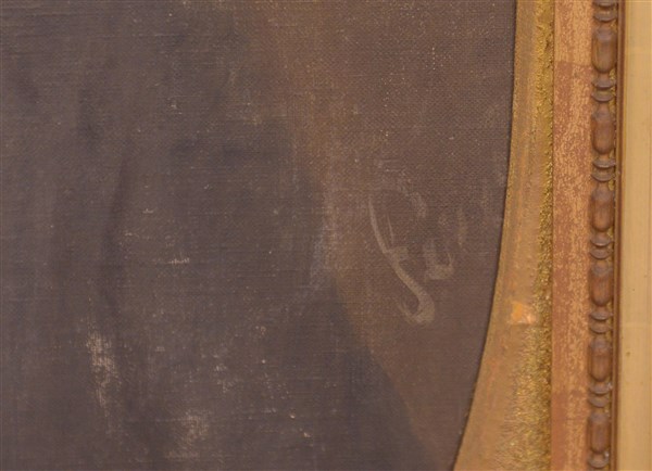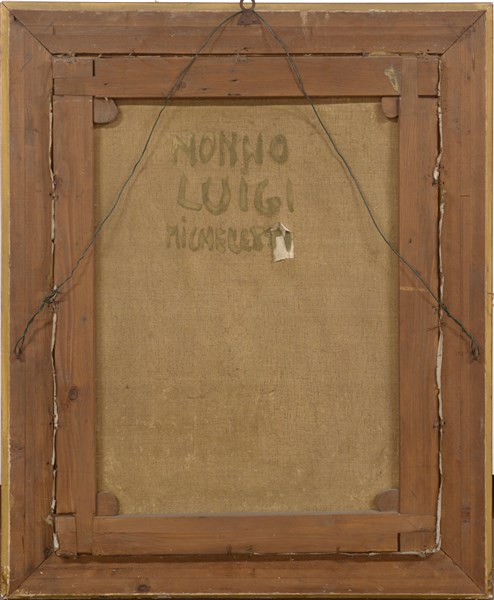 "Ritratto di Luigi Micheletti" olio su tela (cm 89x70) Firmato a destra. Al retro: iscrizione. In cornice (difetti)