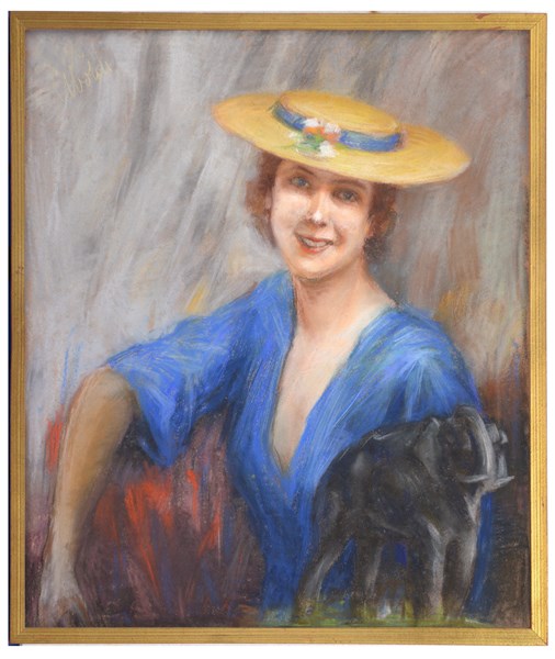 "Ritratto femminile" pastelli colorati su carta (cm 70x60) Firmato in alto a sinistra. In cornice Provenienza: Milano, Eredità Bernasconi