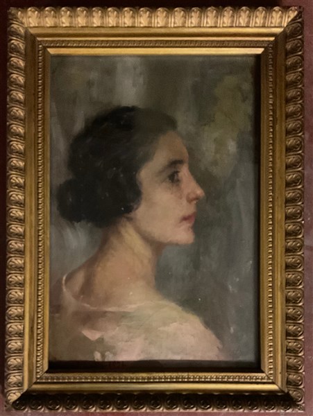 "Profilo di donna" olio su tavola (cm 33,5x23) Firmato e datato 1926 in basso a sinistra. In cornice