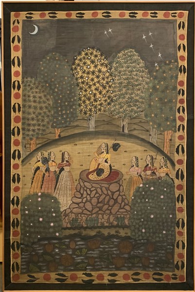 Arte indiana, pannello dipinto su tessuto con figure femminili (cm 156x99)in co