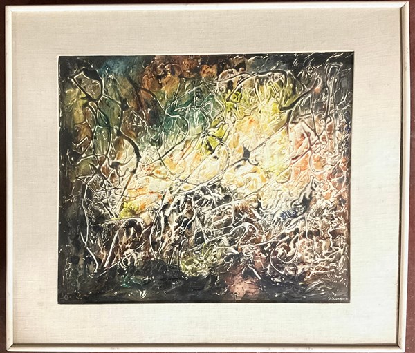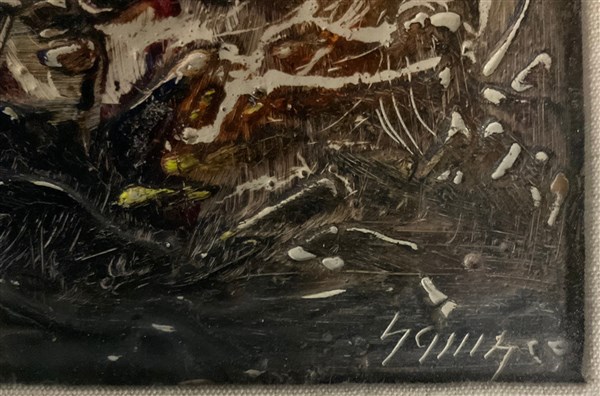 Firma indecifrata "Senza titolo" tecnica mista su faesite (cm 39x44) in cornice