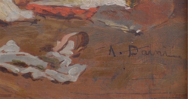 Augusto Daini "I preparativi" olio su tavola (cm 30x22) Firmato in basso a destr
