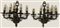 Coppia di appliques a cinque fiamme in bronzo decorato a volute vegetali (h cm