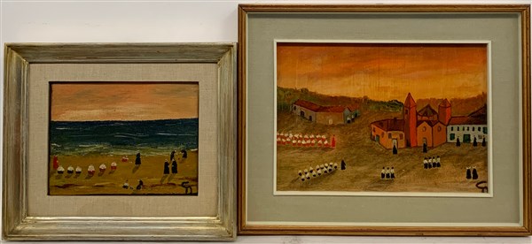 Giovanni d'Anzi Lotto composto da tre oli su tela raffiguranti paesaggi con figu