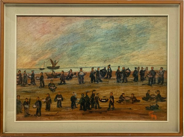 Lotto composto da tre oli su tela raffiguranti paesaggi con figure, misure diverse (misura max cm 60x85). Siglati in basso
