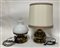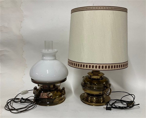 Lotto composto da due abat-jour da tavolo in ottone con manici ad anello, una c
