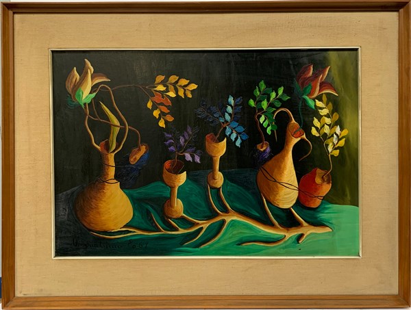Lotto composto da un olio su masonite raffigurante natura morta e firmato Pasqu