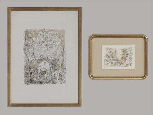 "Paesaggi" due litografie (misure diverse) Numerate in basso a sinistra; firmate in basso a destra a matita. In cornici