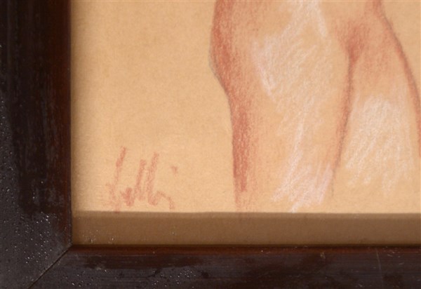Lotto di tre disegni: due a sanguigna e biacca raffiguranti nudo femminile e de